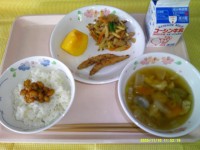 明日9月10日は、十五夜です。十五夜とは、9月に見えるきれいな満月の日をいいます。「中秋の名月」ともいわれます。十五夜には、ススキを飾ったり、栗や里芋などをお供えして、秋の収穫を感謝します。給食では、栗、カボチャ、巨峰などを使いました。汁にはお月様にみたてた黄色い白玉だんごを浮かべました。