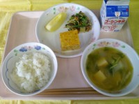 明日は6年生が体育大会に出場します。今日は6年生の活躍を願った体育大会応援給食で、味噌カツ丼でした。