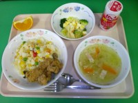 お昼の放送では、江戸川区の小学校で作った小松菜の音楽が流れました。楽しい音楽を聴きながら楽しい雰囲気で給食を食べました。