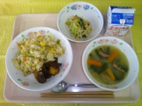 「中華風のコーンスープだよ」と言うと、みんな「やったー」と言います。