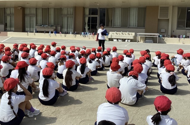 体育の時間の前に学年で集まって生活指導に関する話をしました。
