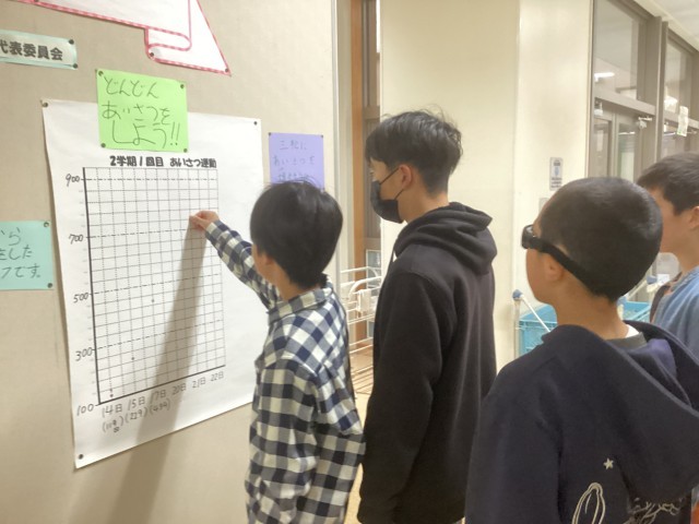先週から「あいさつ運動」をはじめ、あいさつを進んでしてくれた回数を数えてグラフに記録しました。
