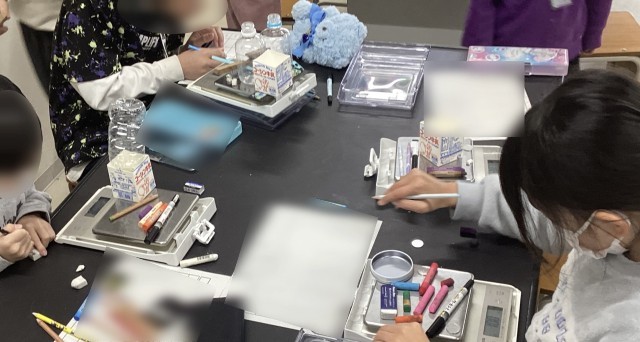 理科室のデジタルスケールを使って「ぴったり100gチャレンジ」をしました。