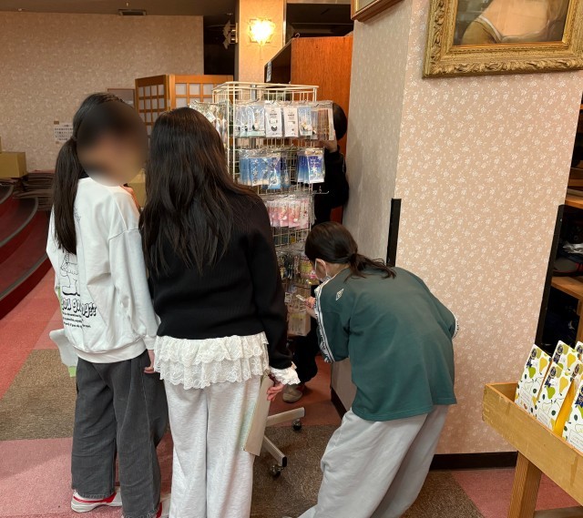 スキー帰りで疲れているはずですが、お家の方へ友達と楽しそうにお土産を選んでいました。「おじいちゃんおばあちゃんはお団子が好きだから」「お母さんとお姉ちゃんにはキーホルダーを」と。