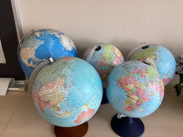 社会は地球儀を見ながら授業を行いました。