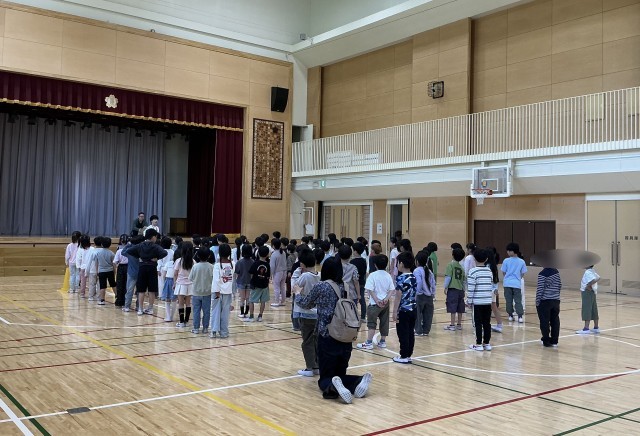 本番に向け、1年生に「おめでとう」の気持ちが伝わるように声の出し方や並び方を練習しました。