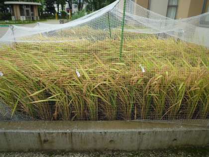 プレイコートには各学年・すみれ学級の菜園があります。その近くを見てみると、小さいけれど「ミカン」の木があります。「実りの秋」です。