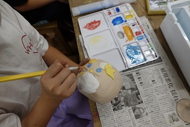 色をつけた作品に次は釉がけをして、学校の陶芸窯で1225度で焼成します!