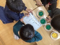 ブラスバンドデビューまで残り3日。楽器を持っての隊形移動も練習しています。本番をお楽しみに。