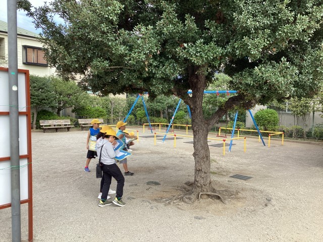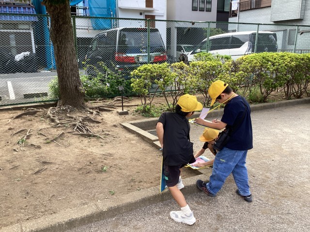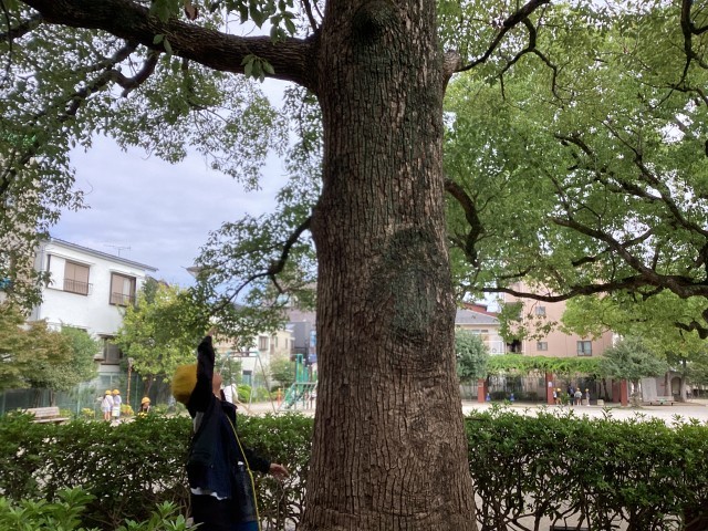 普段は見過ごしてしまう木や地面の穴も、「楠の木はアオスジアゲハの餌になるんだよ」や「アリの巣ではなく、蝉の幼虫が出てくる穴なんだよ」など詳しく教えてもらうことができました。