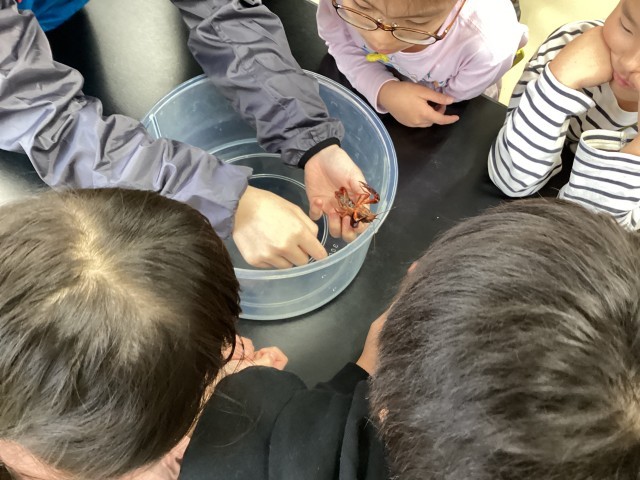 これまで1度もザリガニを触ったことがなかった子も初めて触ってうれしそうにしていました。