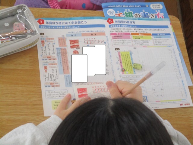 12月17日(水)に船堀郵便局からの出前授業にて、手紙の書き方について学習しました。普通のはがきと年賀はがきの違いについての説明や年賀はがきの書き方についての説明を受けながら、作法を守り丁寧に年賀状を仕上げることができました。