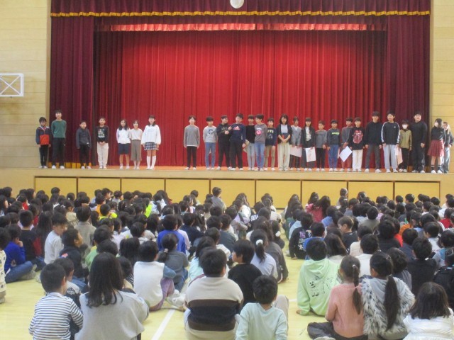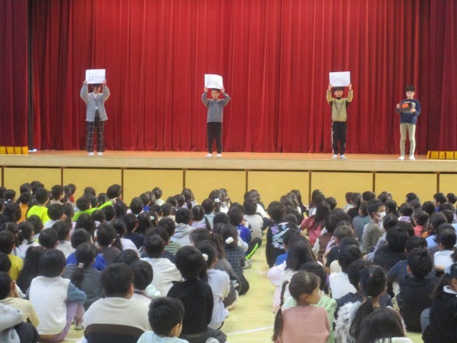 12月18日(木)の朝の時間に広報委員会の紹介集会を行いました。広報新聞ができるまでの過程を劇にして紹介しました。