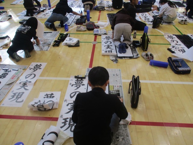 1月9日(金)、13日(火)に校内書き初め大会を行いました。緊張感をもちながら、一筆一筆に集中し取り組んでいました。