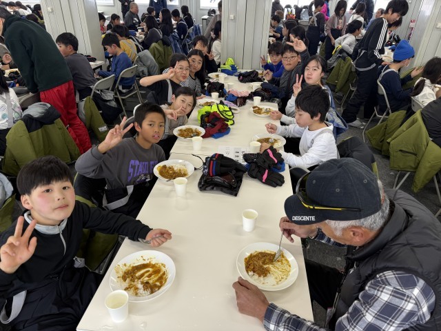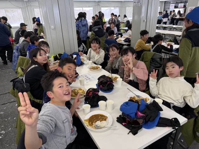 スキー班の人たちと一緒に食べてそのまま雪遊びへ…。元気です!