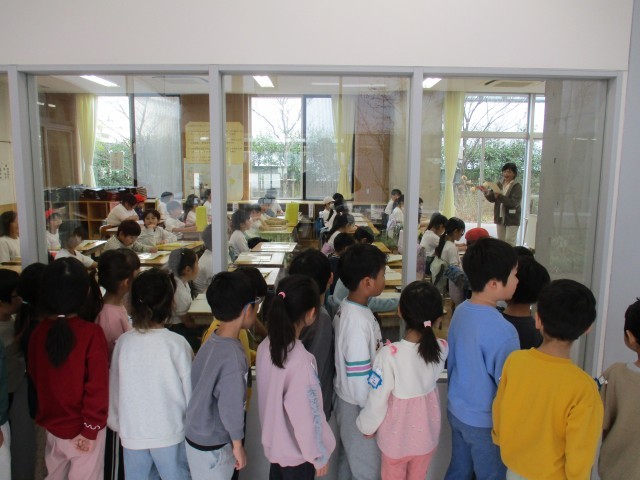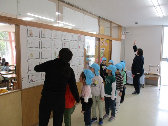1月20日(火)に来年度1年生になる園児と1年生との交流会を行いました。今年度は、区内の幼稚園と保育園の7園から147名が来校し、1年生による絵本の読み聞かせや校内探検などを行いました。
