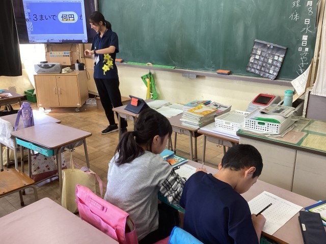 3年生は算数の授業で、**かけ算の筆算()**に挑戦しました。