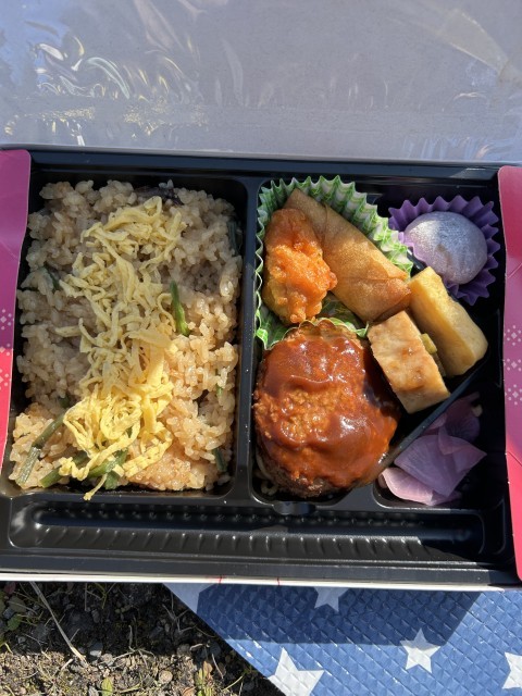 天候にも恵まれ、最後のお弁当に舌鼓を打っています。