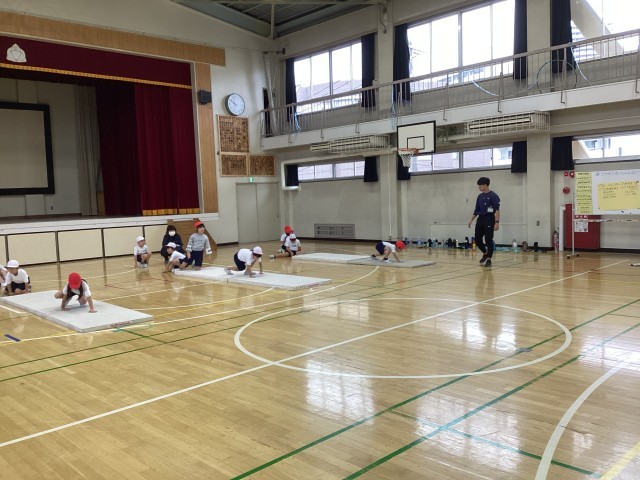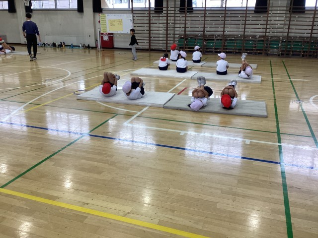 動物歩きをしたり、ゆりかごをしたり楽しみながら、回る感覚を高めていました。