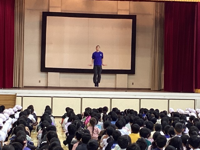 なわとびパフォーマーのふっくんが、なわとびを教えに来てくれました。