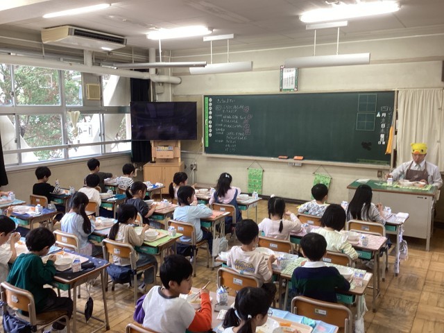 初めての給食でしたが、ルールやマナーを守って、美味しく食べていました。