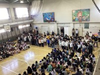 と作業を進め、全校児童が給食で食べるとうもろこしを一生懸命むきました。