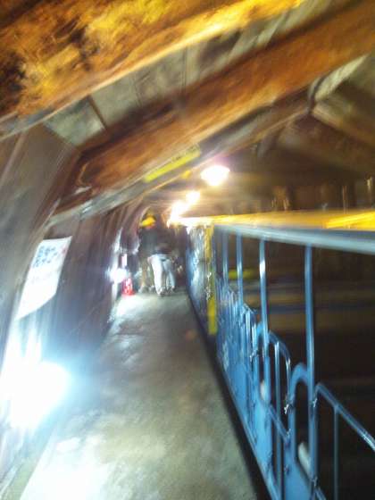 部屋をきれいに掃除をしました。後に残すのは感謝の気持ちだけです。学園をバックに記念撮影をして、学園のみなさんが見送ってくれるなか、手をふりながらお世話になった学園に別れを告げ足尾銅山に向かいました。足尾銅山ではトロッコに乗り坑道に入りました。坑道の中は歩きながら、銅山の歴史や働いている人の様子を見ました。