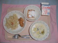 油揚げ、鶏肉、竹の子を煮てごはんに混ぜました。