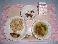 今日は「一汁三菜」の日です。和食にしました。鮭が脂がのって美味しかったのか、残りが少なかったです。すいかは初物ですが甘かったので、皮のきわまで食べていました。