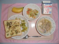 今日のこんだては…・和トースト 牛乳 青のりポテト 小松菜サラダ もやしえのき芋...
