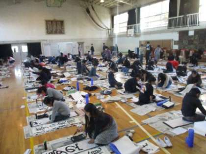 1月11日(木)の3・4時間目、学年で集まって書き初めをしました。