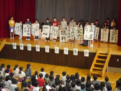 各学級の代表がことしの目標を発表しました。目標に向かって努力して、達成できますように。