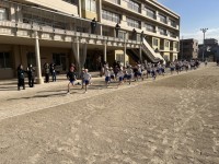 持久走大会が始まりました。まずは3年生の女子からスタートです。