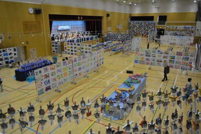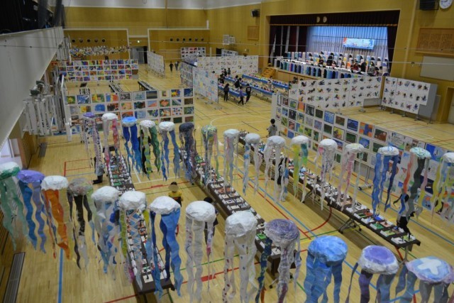 屋内運動場の全面を使っての展覧会は見ごたえがあります。