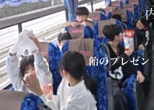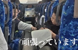 レクリエーション係によるバス内の和みの時間です。三日間過ごす宿泊地に由来する内容のクイズ大会なイントロクイズなど、みんな積極的に参加しています。