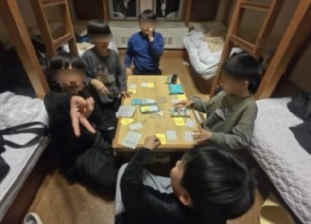 一日目の行程が終わりました。各部屋では恋❤️話で盛り上がっている部屋やカードで楽しむ部屋、反省をしおりに記入しているしっかり部屋など、いろいろですが充実した一日だったようです。就寝後、教員は夜中まで交代で見回りです。