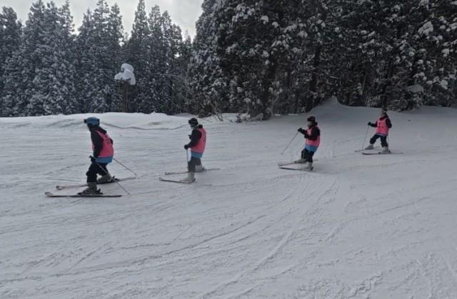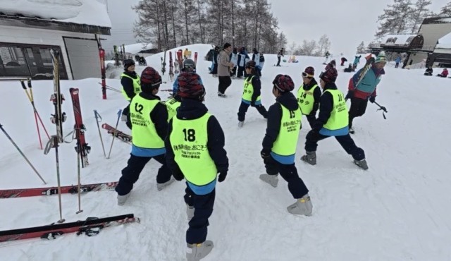 現地では昨夜から久しぶりの新雪で今日はパウダースノーだそうです。重ねてラッキー✌️全員がスキ一場に到着しました。