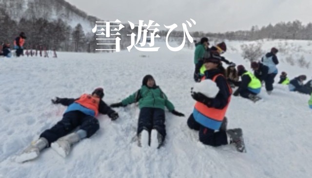 クラスごとに分かれてそれぞれの体験をしました。雪遊びやスキー靴と板合わせて、そして、そり遊びなど、いっぱい運動をしましたので夕食はたくさん食べることでしょう。