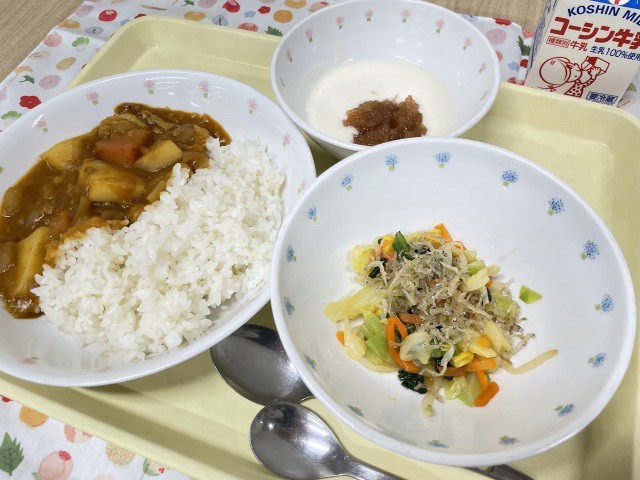 献立を配った日から、カレーうどんが楽しみ!と言っている子が多く、楽しみにしていたメニューでした。