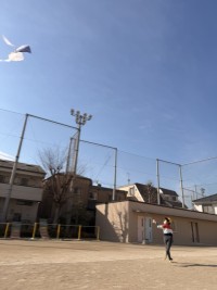 生活科の学習で凧に絵を描いてオリジナル凧を作り、校庭で凧揚げを行いました。風を受けて高く上がる凧をみて、子ども達は気分が高揚している様子でした。