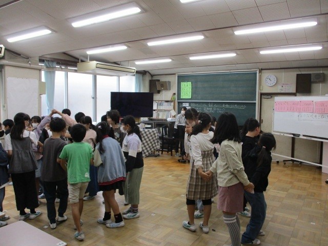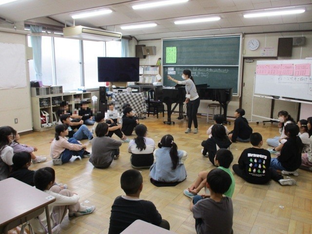 【4年生】音楽 公開日 2025/10/23 更新日 2025/10/23 できごと 10月23日(木)音楽のリズム・音色・旋律・音の重なりを感じとる学習をしました。なべなべそこぬけの歌を、身体表現を行い楽しみながら歌いました。 いいね(0)