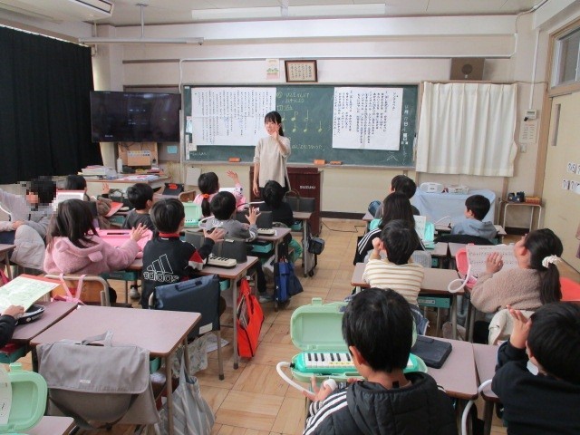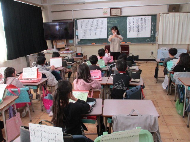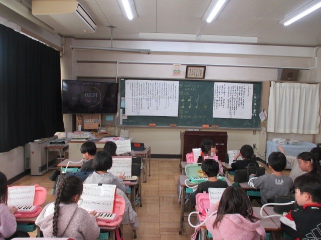 「よろこびの歌」を鍵盤ハーモニカで練習しています。