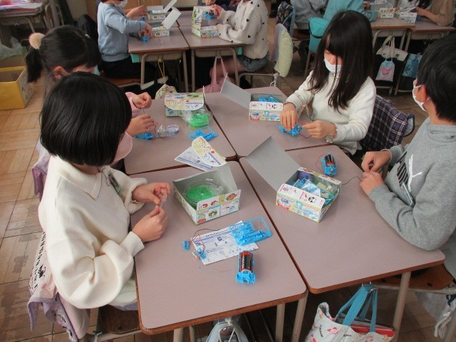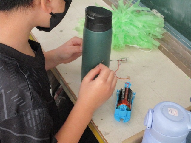 「電気の通り道」の学習で、どんなものが電気を通すのか実験しました。