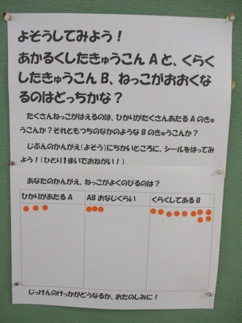 自分の予想に近い方に、これから子供たちがシールを貼っていきます。