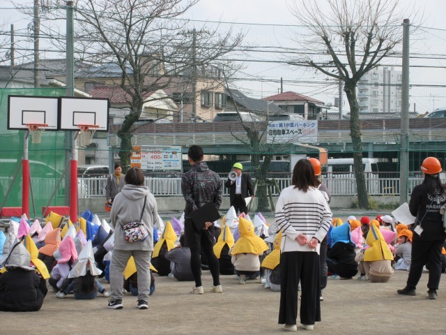 近隣の民家から火災が発生したという想定の避難訓練を行いました。