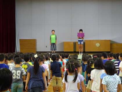 いよいよ今日から2学期が始まりました。生活のリズムを整えて、学習や運動に取り組んでもらいたいと思います。始業式では5年生の代表児童が2学期に頑張りたいことを堂々とした姿で発表しました。
