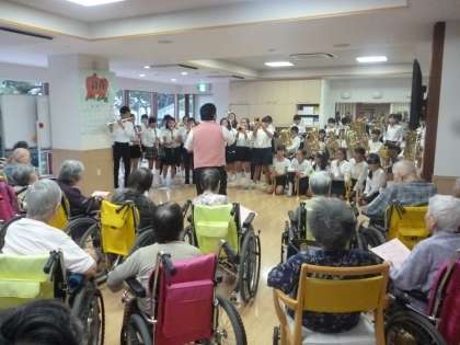 10月1日(木)、森山ケアセンターへ演奏会をしに行ってきました。子供達は、今日の日まで一生懸命練習を積み重ねてきました。「オブラディオブラダ」「魔女の宅急便」「ふるさと」を演奏しました。聞いている方々も、笑顔になったり、涙を流したりと、音楽が心に伝わったようで大成功でした。今後も練習を積みかねて、12月の管楽器発表会に向けさらなる向上を目指します。