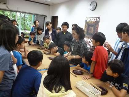 午前中は、だいや川公園に行きました。23のアスレチックコースを回りました。特にターザンロープが人気で、元気いっぱい楽しんでいました。午後は、伝統工芸の日光彫に挑戦しました。プロの方々から掘り方を教わり、一人一人が思いの詰まった作品を作ることができました。途中で寄った霧降の滝では、たくさんの自然を感じることができました。宿舎に到着した後は、入浴・夕食と続きました。部屋の友達に声を掛けあっている姿がたくさん見ることができました。夜は体育館で学年レクを行いました。部屋ごとに練習してきた出し物を披露しました。大盛り上がりで、充実した日を過ごすことができました。