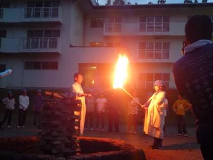 早く宿を出発し、華厳の滝を見学しました。80mの迫力ある滝に、子供たちは「凄い。」「気持ちいい。」と呟いていました。滝をバックに、学級・学年集合写真も撮ることができました。そして、10時半から5時間かけて切り込み湖・刈り込み湖をハイキングしました。とてもつらいコースでしたが、声をかけあって全員でゴールをすることができました。ゴールの光徳牧場では、美味しいアイスクリームを食べました。幸せそうな表情が多く見られました。夕立があり、外でできるか心配だったキャンプファイヤー。予定していた時間だけ、雨が止み行うことができました。レク係を中心に、歌を歌ったり、フォークダンスを踊ったりと、良き思い出ができました。