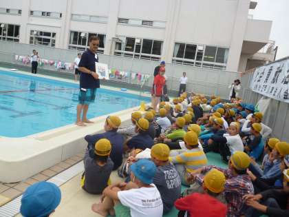 7月8日(金)6年生対象に着衣泳の授業が行われました。川や海などに万が一落ちた場合、溺れないために、着衣のまま浮く方法について学習しました。授業で2つのことを学びました。1つめは、慌てることなく「浮いて待つ」ということです。ドタバタしたり、叫んだりすると、体が沈むことを体験を通して学びました。2つめは、もし溺れている人がいたら、ペットボトルやボールなど浮きそうな物を投げたり、救急車を呼んだり、励ましの声掛けをしたりすることです。グループ学習の実技演習を通して、理解を深めることができました。ご指導くださった先生方、ありがとうございました。